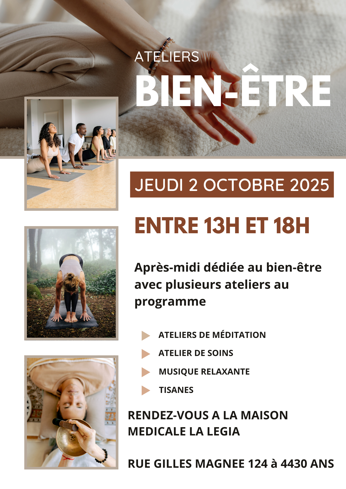 la Maison Médicale La Légia vous accueille pour une après-midi bien-être.
