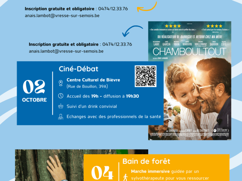 Lors de ce ciné-débat, nous vous proposons de découvrir « Chamboultout », une comédie tendre et émouvante qui rappelle l’importance d’être bien entouré(e) et que l’humour est parfois la plus belle des forces pour continuer. La diffusion du film sera suivie d’un échange avec des professionnels de la santé et d’un drink convivial.