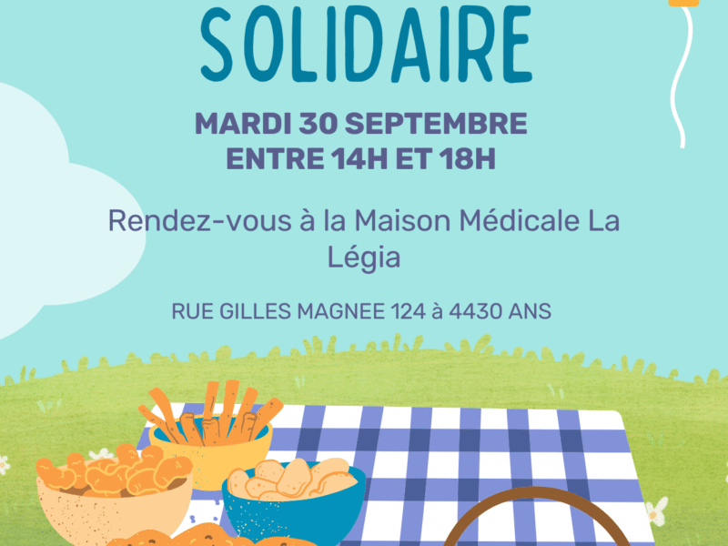 La Maison Médicale La Légia vous invite à un goûter solidaire le mardi 30 septembre 2025, entre 14h et 18h.