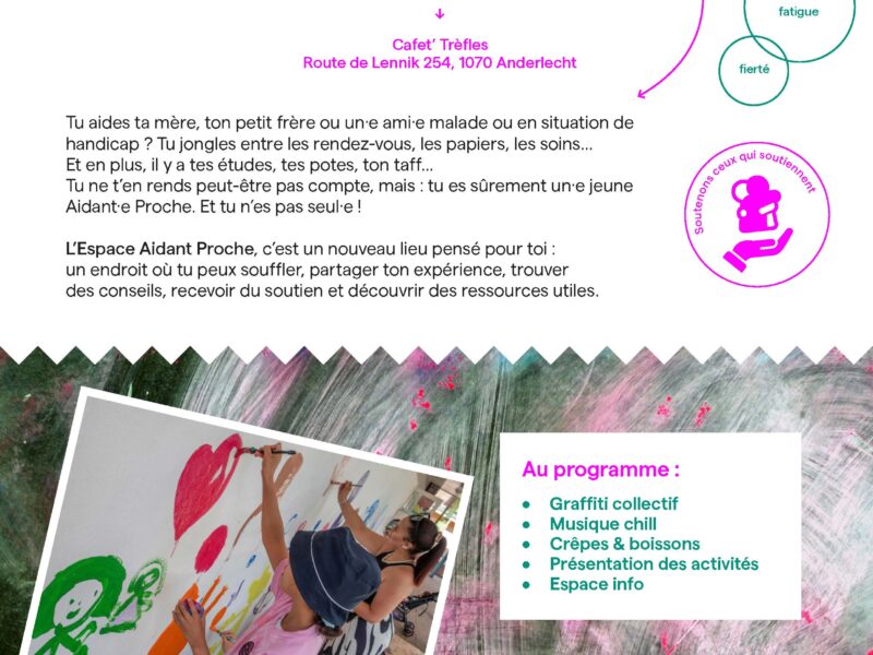 La Commune d’Anderlecht a le plaisir de vous convier à l’inauguration de son tout nouvel « Espace Aidant-Proche », un lieu dédié aux personnes qui accompagnent un proche au quotidien. Que ce soit un parent âgé, un conjoint, un enfant ou un voisin fragilisé, ces aidants-proches jouent un rôle essentiel, souvent dans l’ombre.